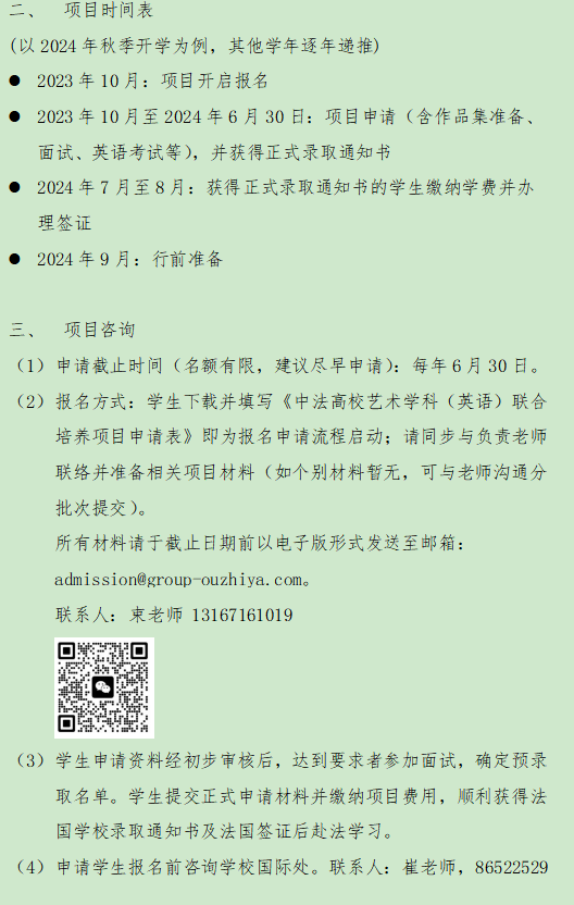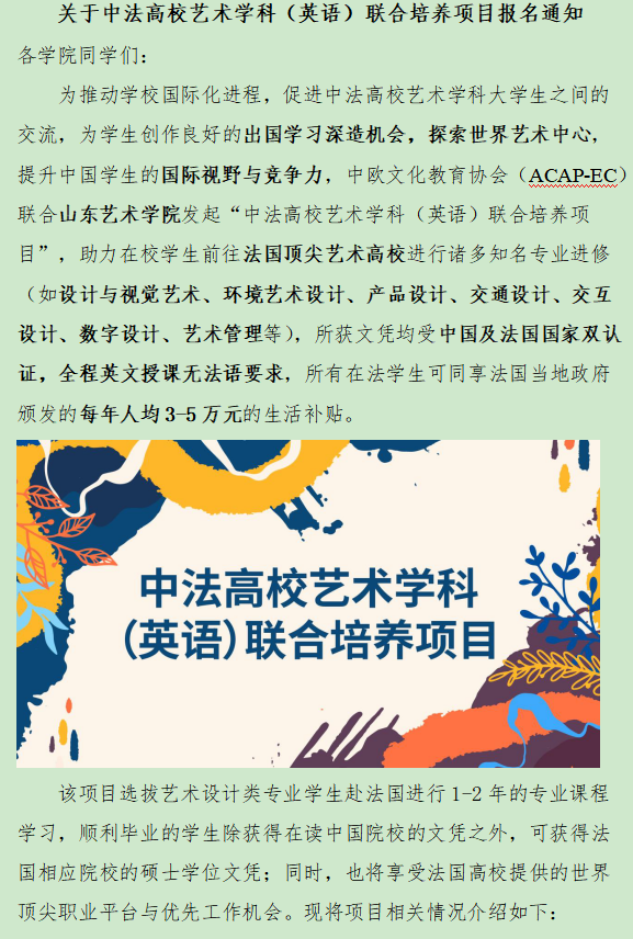 关于中法高校艺术学科(英语)联合培养项目报名通知