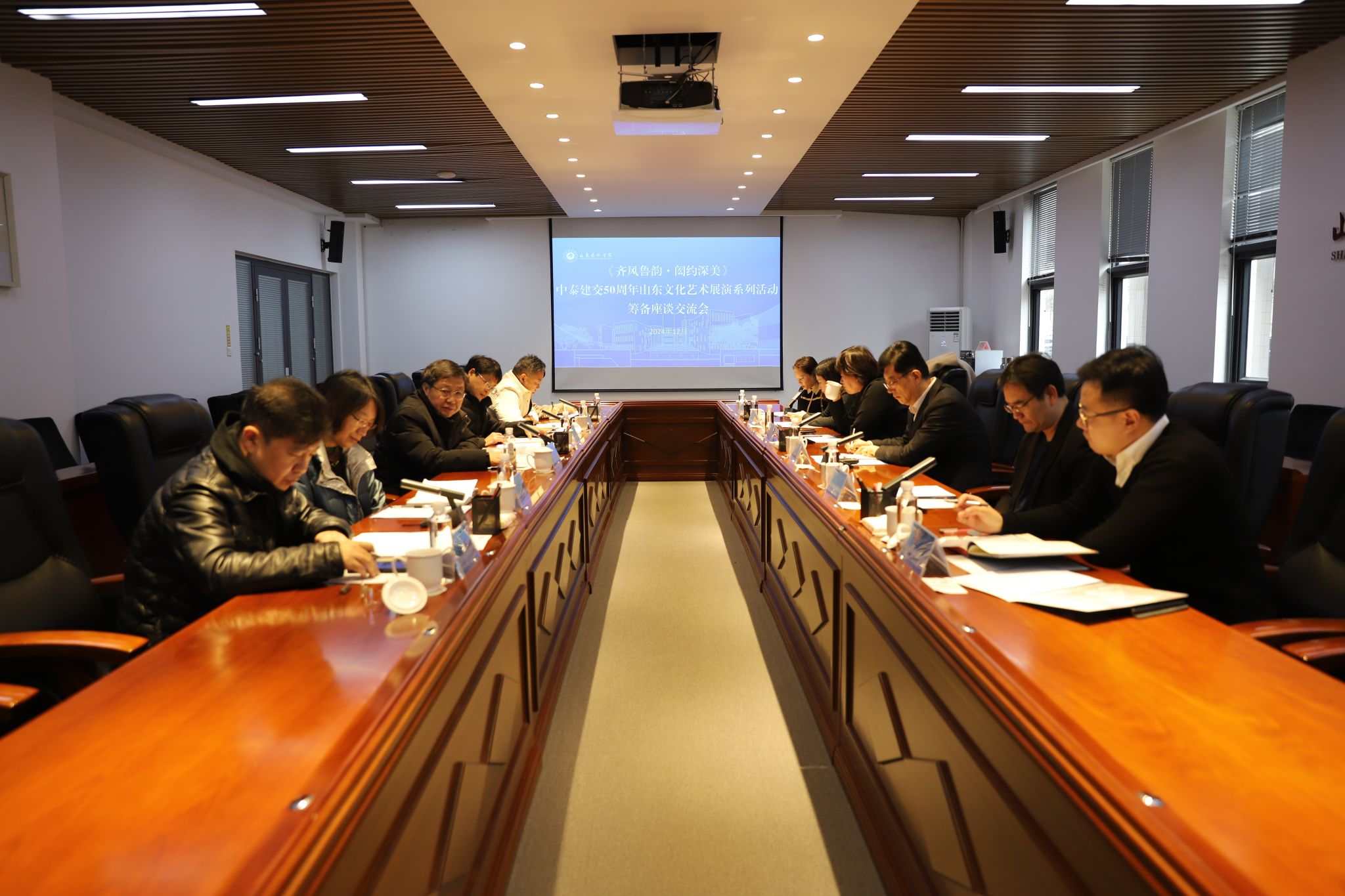12月24日上午,“齐风鲁韵·闳约深美”中泰建交50周年山东文化艺术展演系列活动筹备会在我校召开。省委外事办公室副主任、一级巡视员李永森,亚洲处副处长、二级调研员王绍兵,亚洲处副处长、三级调研员丛箫,鲁慈对外交流中心副秘书长李虹,山东艺术学院党委副书记杨西国出席会议。省委外事办公室亚洲处、泰国正大管理学院、相关行业协会及我校有关部门负责人参加会议。