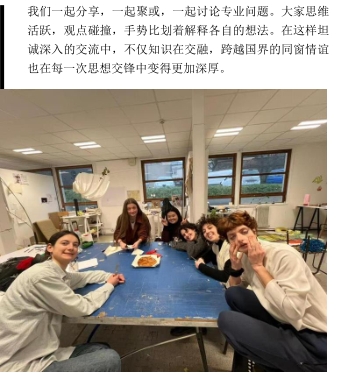 我们一起分享,一起聚会,一起讨论专业问题。大家思维活跃,观点碰撞,手势比划着解释各自的想法。在这样坦诚深入的交流中,不仅知识在交融,跨越国界的同窗情谊也在每一次思想交锋中变得更加深厚。回首在法国的这半年,挑战与成长交织,收获与感动并存。我经历了语言的突破、艺术的震撼、文化的碰撞与内心的蜕变。这不仅仅是一段专业成长的历程,更是一场心灵深处的修行,一次世界观的拓展,一段无法替代的人生经历。它教会了我如何在不确定中寻找方向,如何在差异中建立理解,如何在艺术的光辉下找到自我与未来的连接。