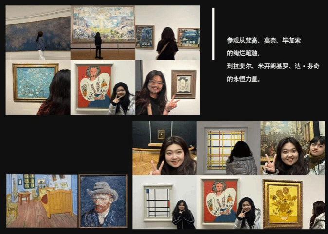 这段时光给予我的,不仅是课堂上的知识与语言的突破,更是一段关于艺术与文化的深度体悟。从巴黎卢浮宫、奥赛博物馆,到巴塞罗那高迪的建筑群;从梵高、莫奈、毕加索的绚烂笔触,到拉斐尔、米开朗基罗、达·芬奇的永恒力量;从圣家族大教堂拔地而起直刺苍穹的震撼,到阳光穿透彩色玻璃洒下的神圣光雨……那些曾经在高中美术课本、本科教材、甚至研究生考研复习资料上反复凝视的图像和名字,如今终于穿越纸页,在现实中以真实、磅礴的姿态出现在我眼前。这种亲历的震撼,是任何书本、任何复制品都无法传达的,当眼睛代替印刷品,当空间包围感取代平面图像,艺术才真正完成了从“知识”到“体悟”的跨越。这些现场体验重塑了我对艺术的认知,也极大丰富了我的感受力与判断力。